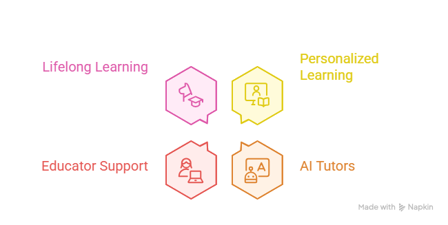 - Generative AI Tutors: AI-powered tutors can provide one-on-one coaching, making quality education more accessible to students at scale.