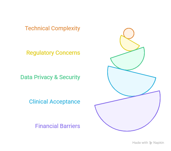 Despite its transformative potential, AI adoption in healthcare IT faces significant hurdles that organizations must address strategically.