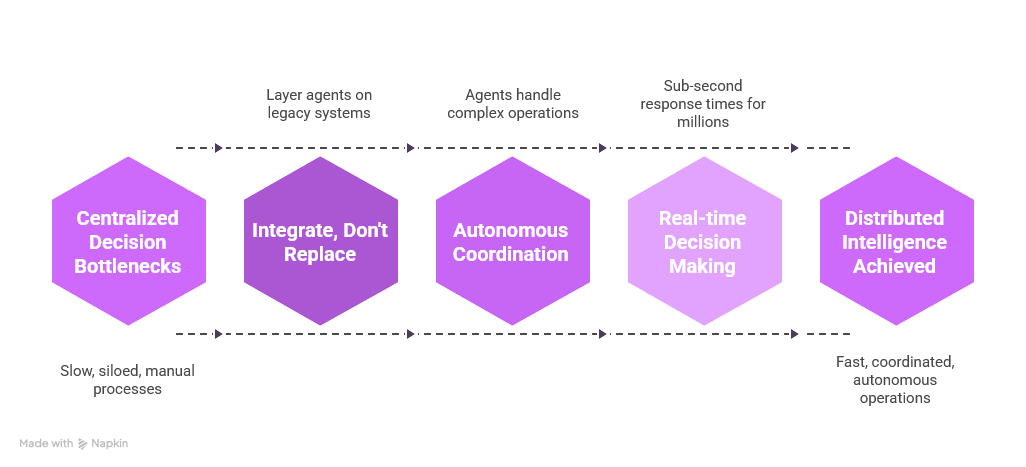 Integration with existing infrastructure matters more than replacement. Successful MAS deployments don't rip out legacy systems—they layer intelligent agents on top. Agents communicate with ERP systems, CRM platforms, and workflow tools through APIs, gradually assuming decision-making responsibilities while humans maintain governance.